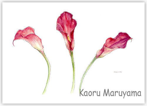 カラーというと白のイメージですが、このワイン色はとても惹かれました。 最近は様々な色の花が作られ、難しいと言われている青の花も、数年前に青いバラが成功し、今は青いチューリップの研究が進んでいる、という記事を目にしました。 青好きの私としてはたくさんの青い花を見てみたい気持ちです。